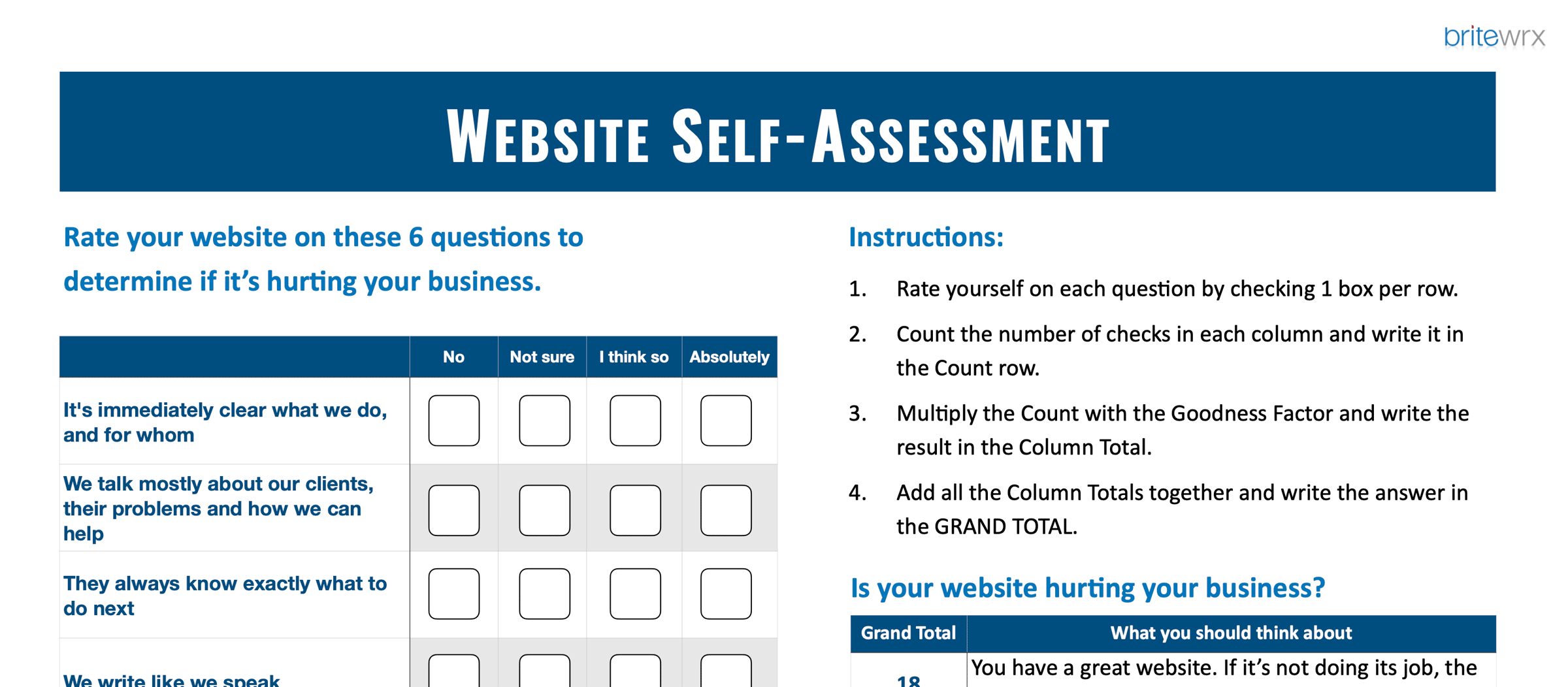 Rate your website on these 6 questions to see how well it's doing. Score 15+ and you're in good shape. Score below 12 and you have work to do.